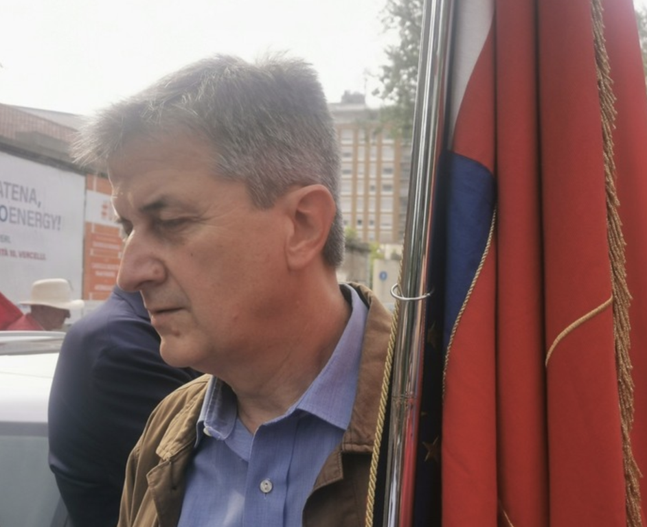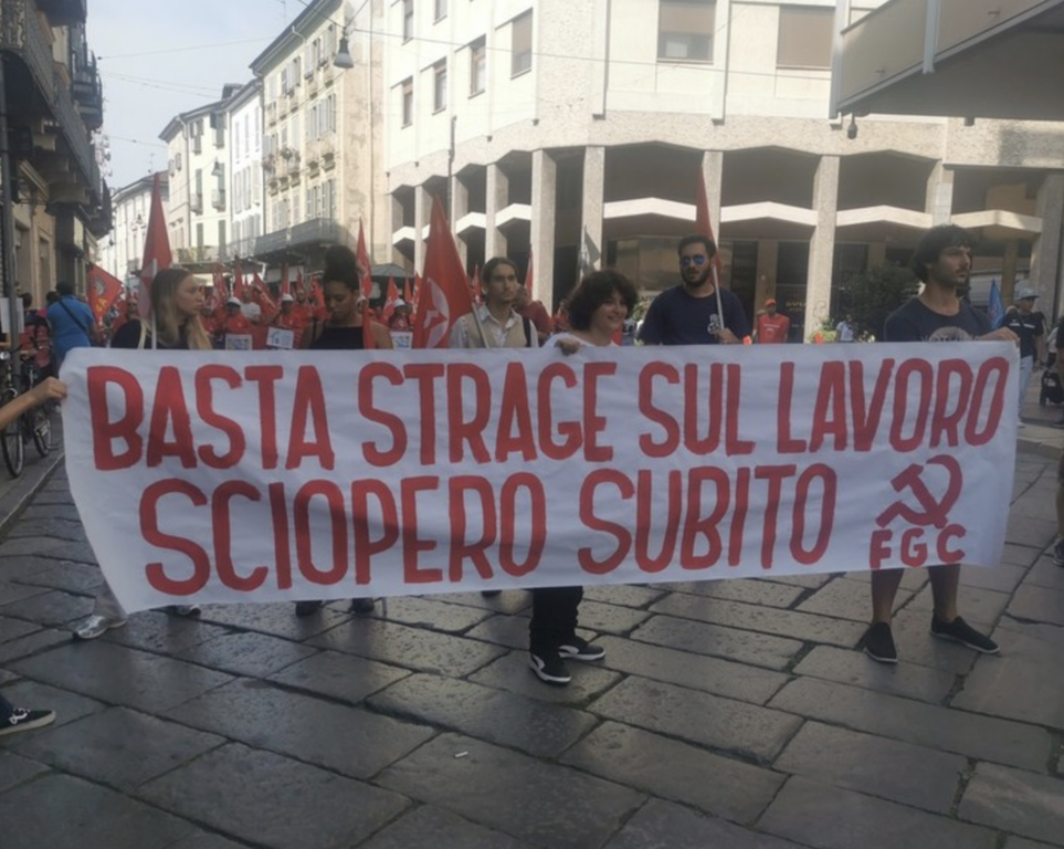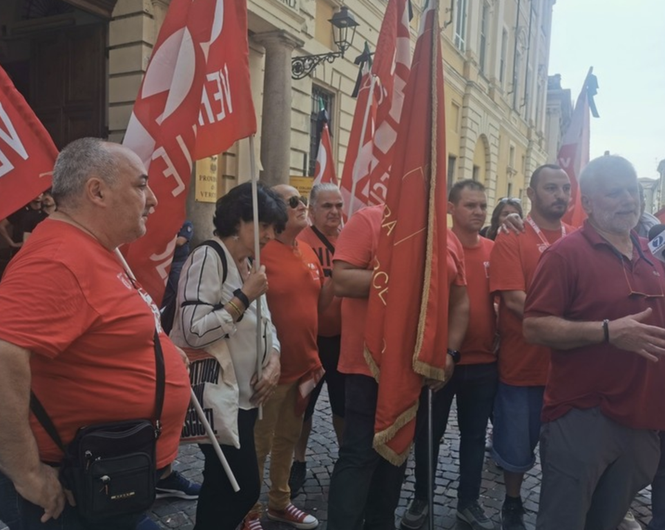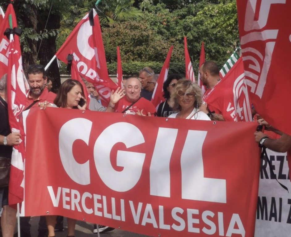 In fondo al corteo (che ha sfilato dalla stazione fino davanti alla Prefettura) una delegazione di lavoratori della Si.gi.fer di Bovorgovercelli, la ditta per cui lavoravano in cinque lavoratori deceduti. Tanto loro quanto i familiari delle vittime hanno partecipato in silenzio.