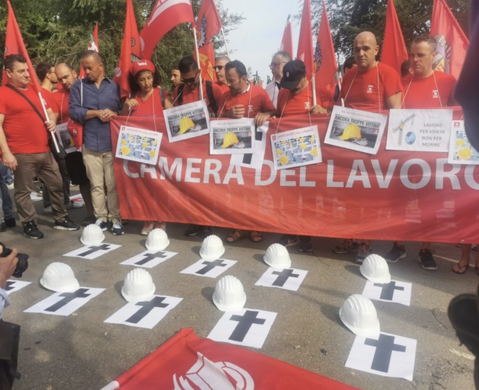 Davanti alla Prefettura hanno preso la parola tre lavoratori che hanno chiesto più controlli, più sicurezza, più rispetto per la vita umana.