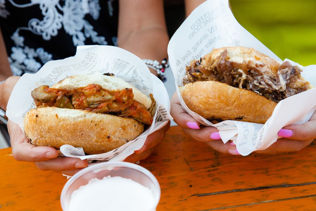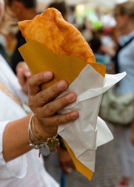Ci spostiamo in Piemonte con i panini con salsiccia di Bra cruda e cotta di Binario 9 e ¾ e ancora raviolini del Plin, hamburger e battuta di Fassona, stracotto al Nebbiolo, vitello tonnato, tomahawk di manzo di Sound Break, mentre con pane e panelle, pane cunzato e pane con milza, mini-arancini, carne di cavallo, cannoli siciliani riempiti al momento e cassatine di Sapori di Sicilia raggiungiamo, appunto, l’isola.