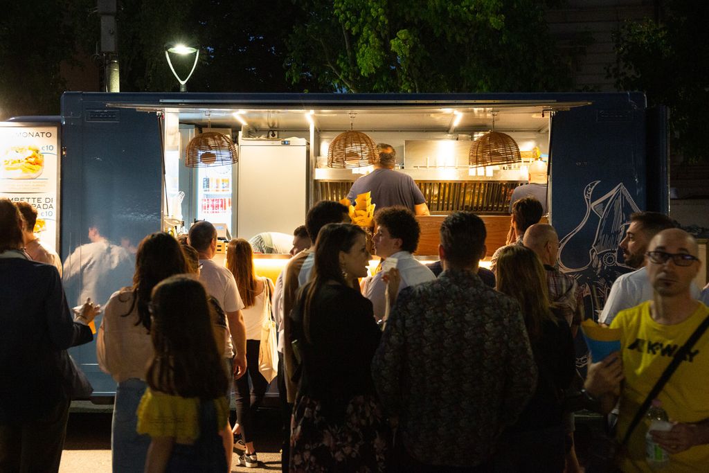 Infine, pan tometta, pan tartufo, pan pork di Pan Pan e per chi ama il gusto del mare frittura di pesce e specialità con salmone, moscardini, pesce spada, bombette di baccalà di Kraken, concludendo con polpette di carne e verdure di Na Pinta Vineria Vagabonda – qui e da La Giardinetta ci aspettano anche vini e cocktails.