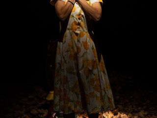 Il linguaggio scelto unisce più discipline: il teatro di parola, la danza, la musica e il teatro d’object. Molto forte è l’elemento figurativo, caratterizzato dalla presenza di un pavimento ricoperto di foglie secche che accompagnano fisicamente ogni azione e diventano metafora del rinnovamento: la donna si disegna gli spazi del proprio labirinto, in una sorta di Dogville d’appartamento che muta con il racconto di sé, capace di segnare conquiste e perdite.