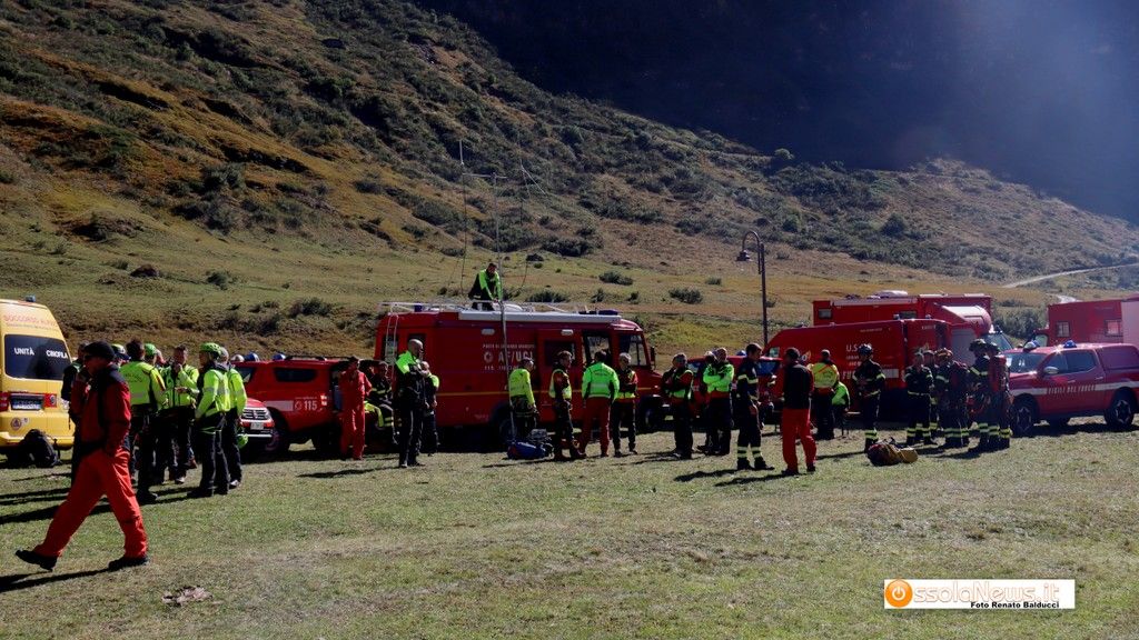 A Formazza oggi c’era un esercito di soccorritori: Finanza, Soccorso civile, vigili del fuoco, carabinieri, cani da ricerca e due elicotteri a far la spola da Riale alla zona della frana. Coordinati dal responsbaile provinciale Matteo Gasparini e dal vice presidente regionale, l'ossolano Maurizio Tori, si muovono gli uomini e le donne del Soccorso alpino; le loro radioline ‘gracchiano’ e portano notizie a spizzichi nella speranza di trovare i corpi.
