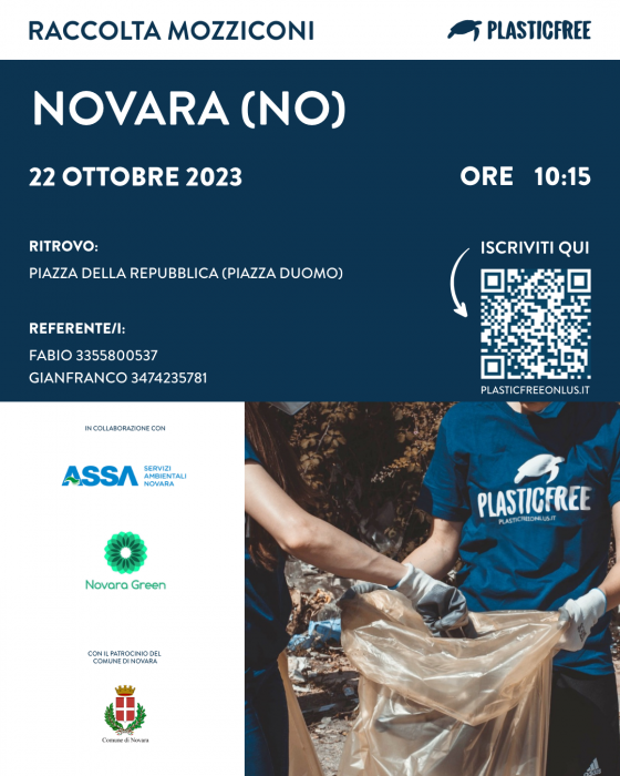 Ogni anno in Italia vengono abbandonati 14 miliardi di mozziconi a terra di cui 5 milioni sulle spiagge. Un singolo mozzicone può contaminare 1000 litri d'acqua, un singolo mozzicone impiega 10 anni per decomporsi anche se in realtà diventando microplastica finisce nei fiumi e poi nei mari e quindi ritorna nella catena alimentare. Domenica 22 ottobre, ritrovo in piazza della Repubblica alle ore 10.15 con Plastica Free con la campagna di raccolta. L'iniziativa è promossa dall'associazione in collaborazione con Assa, Novara Green e Comune di Novara.