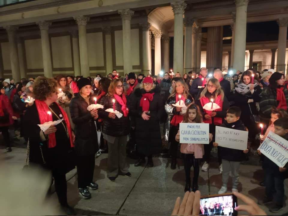 Oltre 200 persone, donne e uomini hanno manifestato a Novara ieri sera il dolore e rabbia per il femminicidio di Giulia Cecchettin. Il flash mob è stato organizzato da Cgil-Cisl-Uil e Liberazione e Speranza. Presenti le assessore alle pari opportunità e alle politiche sociali Giulia Negri e Teresa Armienti, oltre a diversi consiglieri comunali di maggioranza e di opposizione, oltre al consigliere regionale del Pd Domenico Rossi. Moltissimi dei presenti indossavano una sciarpa rossa, simbolo della lotta contro la violenza sulle donne. Tante le candele e le fiaccole. Il “no” a ogni violenza di genere, è stato ripetuto in coro dalla piazza.