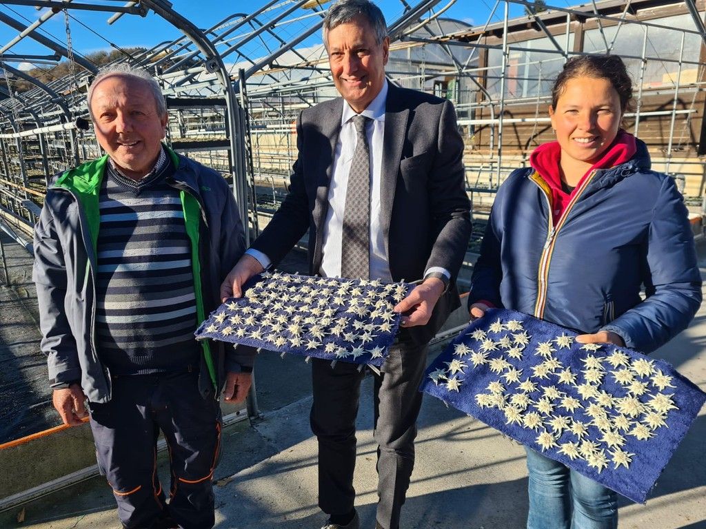 L’assessore regionale alla Sanità, Luigi Genesio Icardi, ha fatto visita ieri mattina al Vivaio Edelweiss di Villar San Costanzo per esprimere la riconoscenza della Regione Piemonte ai titolari di questa attività che doneranno oltre settemila stelle alpine come addobbo all’albero di Natale, anch’esso proveniente dalla valle Maira, allestito in piazza San Pietro a Roma per papa Francesco.