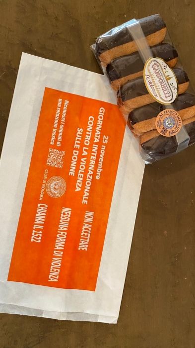 Gli stessi slogan sono riportati su sacchetti di carta che verranno distribuiti gratuitamente a diverse farmacie ed esercizi commerciali della città. E infine, in collaborazione con il Biscottificio Camporelli, sono state realizzate speciali "etichette" arancioni adesive da apporre alle confezioni di dolci in vendita, recanti un QR Code, che inquadrato con lo smartphone conduce all'elenco dei centri di aiuto del territorio e ai loro riferimenti.