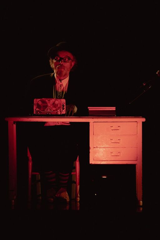 Un clown in fuga da un romanzo s’imbatte nel Krapp del celebre atto unico di Samuel Beckett; coglie suggestioni dall’Apeirogon di Colum McCann e si nutre di parti del romanzo omonimo, inedito, di Franco Acquaviva.