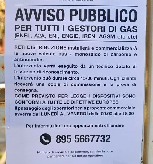 Il Comando di Polizia locale, su invito dei residenti nella zona di via Po, segnala la presenza di alcuni manifesti riconducibili a una dubbia attività di commercializzazione di “valvole gas – monossido di carbonio e antincendio”. "Da controlli immediatamente effettuati – spiega il comandante della Polizia locale Pier Zanatto – sembra che ci siano stati diversi precedenti di situazioni poco chiare, che hanno messo in difficoltà i cittadini, in altre località sul territorio nazionale. Risulterebbe, tra l’altro, che la società di distribuzione della quale compare il logo sul manifesto abbia già precisato tramite i propri canali di operare esclusivamente in Piemonte nelle provincie di Torino e Vercelli. Invitiamo pertanto i cittadini a prestare attenzione e a segnalare eventualmente la presenza di sedicenti incaricati, ringraziando i residenti della zona di via Po per l’attiva e responsabile collaborazione con il Comando".
