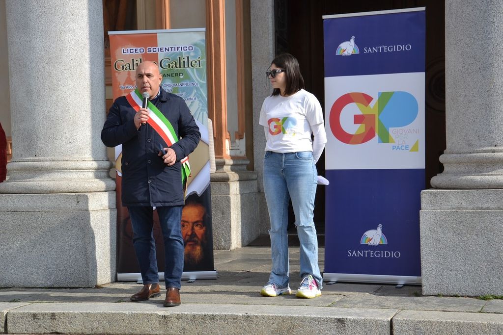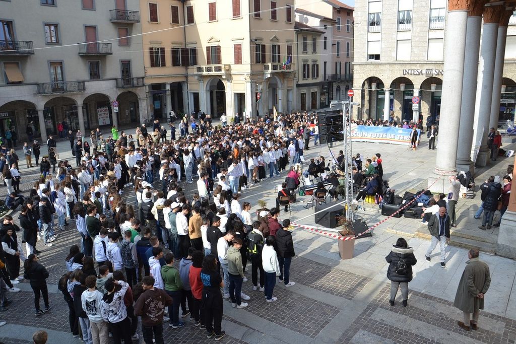 Il liceo scientifico di Borgomanero e Comunità di Sant’Egidio si sono mobilitati per la Pace. Nella mattinata di mercoledì 21 febbraio, in piazza Martiri hanno dato vita a un flash mob con un mix di canti ,balli, poesie, testimonianze contro la guerra. Per consentire lo svolgimento della manifestazione sono state chiuse al traffico dalle10 alle 13 le zone circostanti a piazza Martiri.