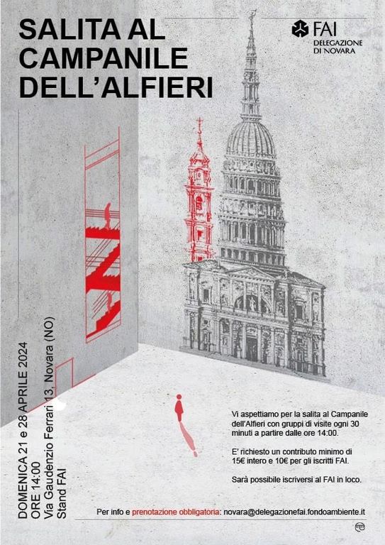 Per la prima volta con il FAI Novara, il 21 e il 28 aprile prossimi, si apriranno le porte del campanile dell'Alfieri, consentendo ai visitatori di ammirare la Cupola di San Gaudenzio da una prospettiva unica. Questo campanile, opera di Benedetto Alfieri, fu eretto con l'intento di diventare la torre simbolo di Novara durante il Settecento. Con i suoi imponenti 92 metri di altezza, ispirati ai modelli viennesi, rimane ancora oggi uno dei campanili più alti d'Italia, ben oltre la media nazionale di 50-60 metri.