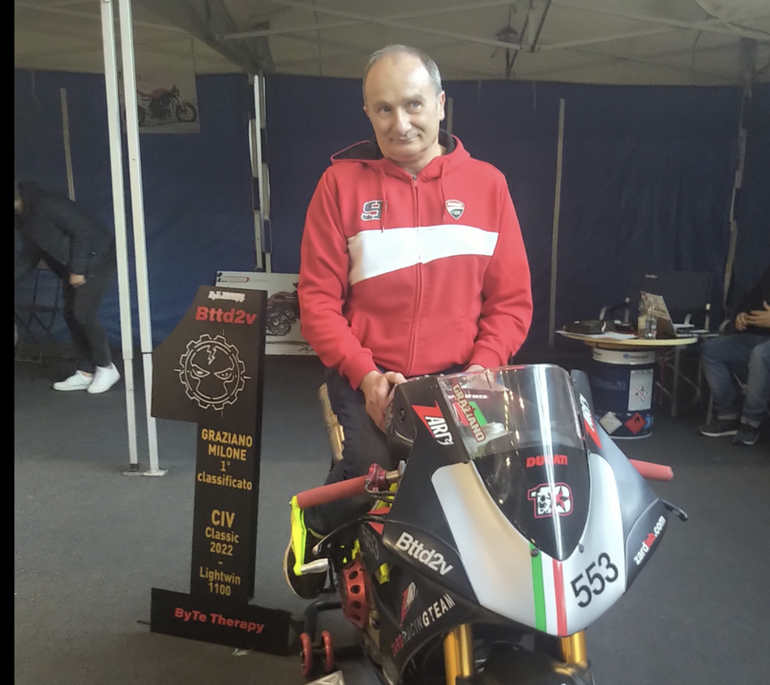 “Per quanto riguarda la prima gara dovevo solo difendermi e fare il meno peggio possibile, purtroppo sia per la moto, vecchia ma potente, sia per il mio handicap, la pista di Varano de Melegari è l’esatto opposto di ciò che avrei bisogno. Ciò posto, il quarto posto va più che bene! Per la stagione 2024 mi attendo, e sto “lavorando” per questo, di fare risultati decisamente migliori, in primis Misano e Cervesina, piste molto veloci, ma anche Cremona”.