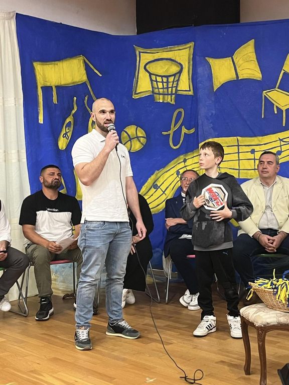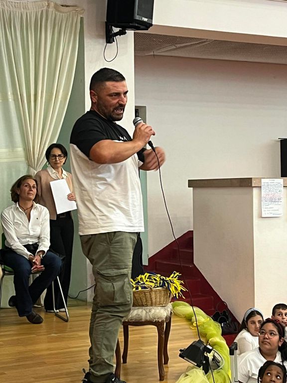 Toccante, insieme con la timida semplicità del premiato (<<Non so come sia possibile conciliare con buoni risultati scuola e sport, so solo che io lo faccio>>, ha risposto alla domanda fatta da alcuni compagni, riscuotendo il caloroso applauso del pubblico), è stato anche l’omaggio musicale tributato dal coro della “Don Milani”, diretto da Chiara Menanno, che ha voluto così festeggiare il campione della scuola, riuscendo inoltre a valorizzare il lavoro di avvicinamento alla musica e al canto svolto con i bambini trecatesi.