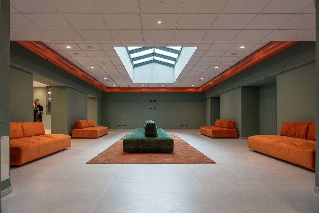 I due piani interrati dove sono stati realizzati i parcheggi pubblici e aziendali (49 posti auto) una sala riunione, uno spazio relax e servizi per i dipendenti (in futuro anche una palestra) c’erano già, quando l’area è stata acquistata. Era un progetto fermo da una decina di anni, destinato a diventare un istituto di cura per anziani.