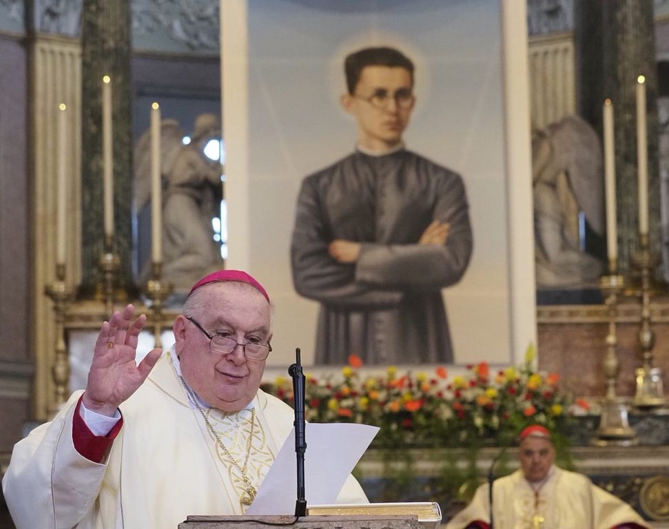 Il vescovo Brambilla ha poi voluto ringraziare tutti coloro che, numerosissimi, hanno lavorato per rendere possibile il processo di beatificazione e chi ha partecipato attivamente alle celebrazioni del 26 maggio. “Un vivo e commosso ringraziamento al Santo Padre Francesco che ha riconosciuto la santità martiriale di don Giuseppe, annoverandolo tra coloro che hanno reso testimonianza fino al sangue della forza del Vangelo. Viva e riconoscente gratitudine esprimo all’amico e illustre cardinal Marcello Semeraro, prefetto del Dicastero delle cause dei Santi, che ha con toccanti parole delineato l’icona del martire, dipingendo davanti ai nostri occhi la figura di un prete dal giovane volto che dona semplicemente la vita per la sua gente. È come la bella figura che abbiamo svelato all’inizio della celebrazione, il cui dipinto originale, per l’arte e la perizia dei pittori Mario Chiodoni e Sabrina Mattioni, è collocato da oggi sull’altare che custodisce le reliquie del martire a Castiglione d’Ossola”.