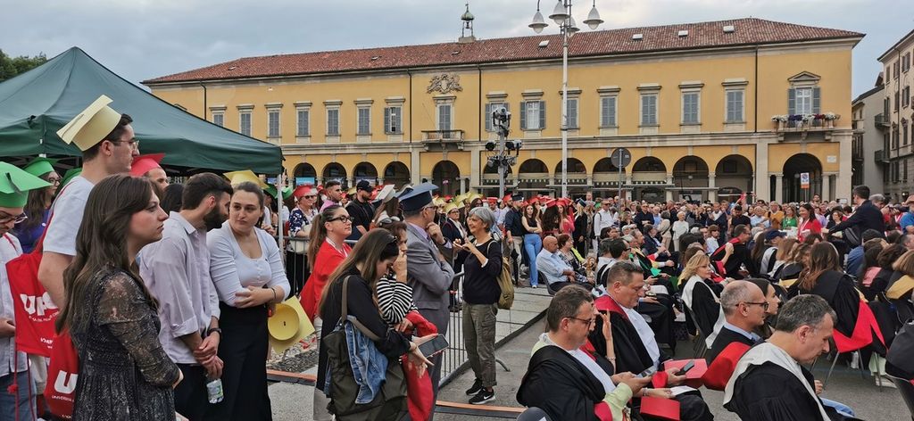 La cerimonia - a cui hanno partecipato oltre 4000 persone, tra cui i 1200 laureati dell'ultimo anno e a cui erano presenti i sindaci di Novara Alessandro Canelli, di Alessandria Giorgio Abonante, e Andrea Corsaro, sindaco di Vercelli ancora per qualche giorno - si è concluso con il suggestivo "lancio del tocco", il copricapo accademico con i colori che contraddistinguono le facoltà. Prima il coloratissimo serpentone degli studenti, aperto dal labaro e dallo striscione ufficiale, e accompagnato dall’orchestra dell’università in formato “wind ensemble” ha attraversato tutto il centro storico partendo dal Campus Perrone.
