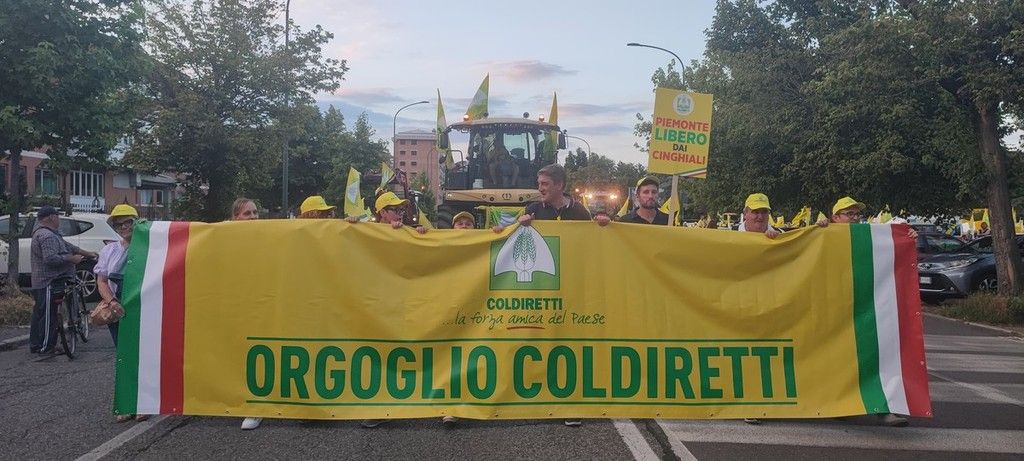 Sotto la Regione Piemonte coi trattori per dire stop ai cinghiali. La protesta è lanciata dagli agricoltori di Coldiretti Piemonte, che dalle ore 21 hanno marciato dal parcheggio del Pala Vela al Grattacielo per denunciare la situazione dei cinghiali, diventata insostenibile per l'agricoltura.