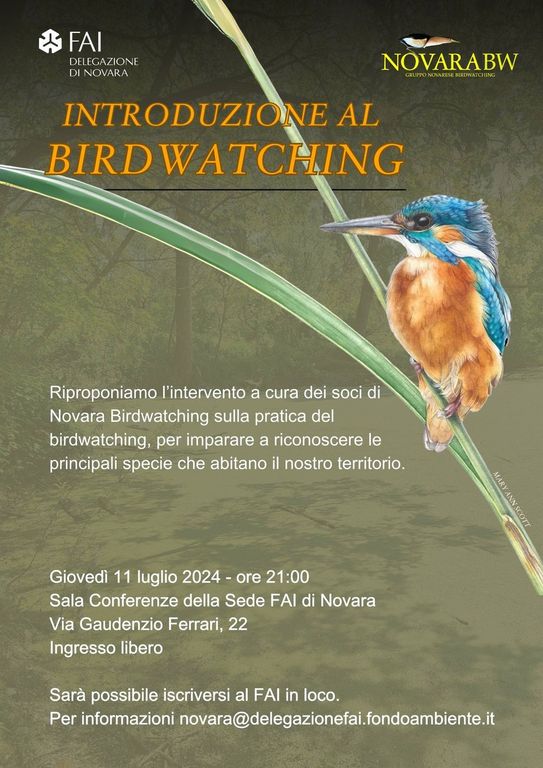 La Delegazione FAI Novara, in collaborazione con Novara Birdwatching, è lieta di riproporre l'intervento tenuto ad aprile presso l'oasi di Casalbeltrame. Questo evento, incentrato sulla pratica del birdwatching, è un'opportunità imperdibile per imparare a riconoscere le principali specie di uccelli che popolano il nostro territorio.