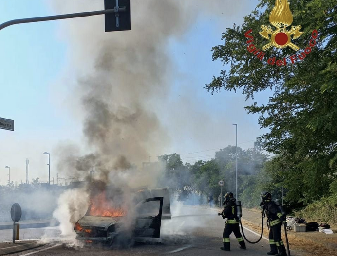 Il mezzo, alimentato a gasolio, era avvolto dalle fiamme che sono state prontamente spente dai vigili intervenuti.