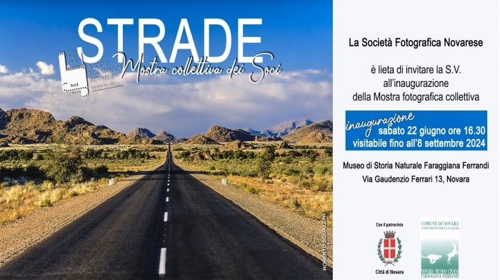 Viaggi on-the-road, paesaggi e scorci che esprimo un virtuale carnet di viaggio dei fotografi della Società Fotografica Novarese che si raccontano attraverso i loro scatti nella mostra fotografica collettiva "Strade".