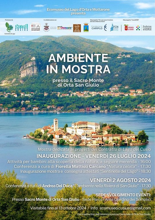 La Provincia di Novara è orgogliosa di patrocinare l'esposizione divulgativa "Ambiente in Mostra", che verrà inaugurata il prossimo 26 luglio presso il Sacro Monte del Comune di Orta San Giulio, nell'area del Giardino dei Semplici.