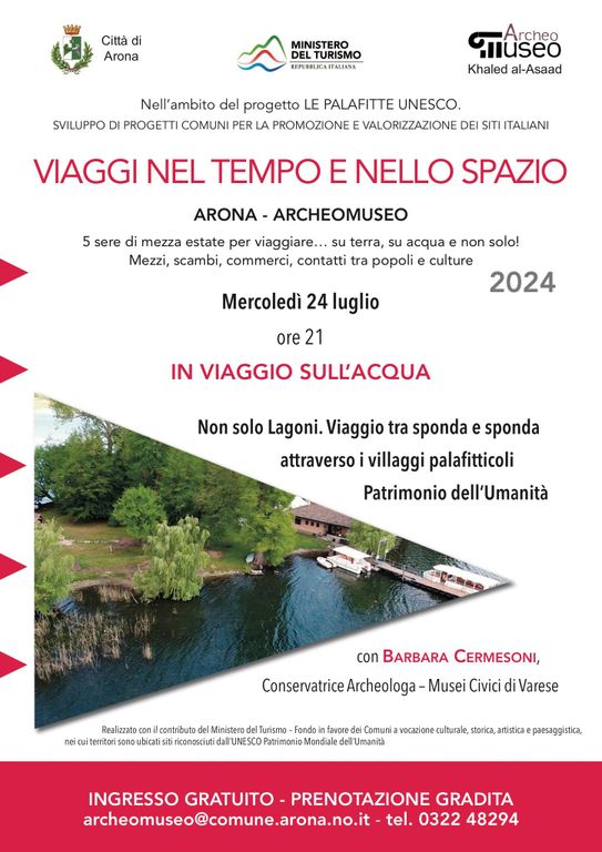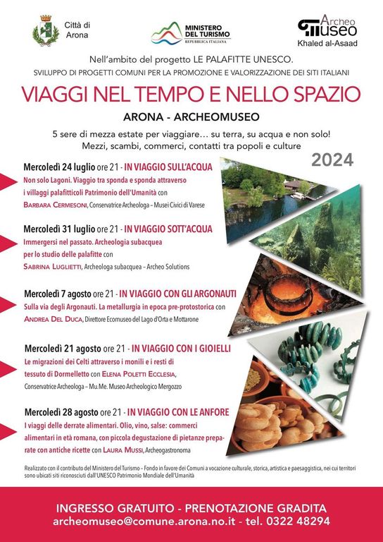 Il Comune di Arona e il suo ArcheoMuseo Khaled al-Asaad organizzano, dal 24 luglio al 28 agosto, la rassegna biennale “Viaggi nel tempo e nello spazio in una sera di mezza estate”. Il tema di quest'anno è “Su terra, su acqua e non solo! Mezzi, scambi, commerci, contatti tra popoli e culture”.