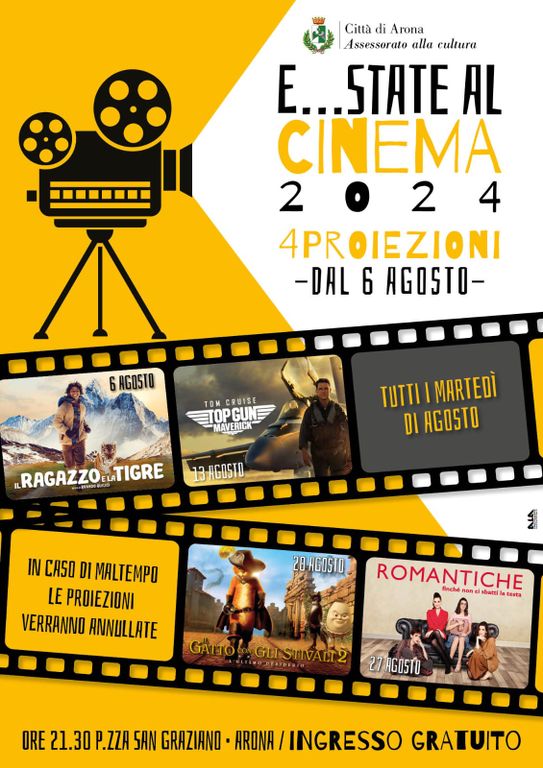 Riparte la rassegna cinematografica all'aperto "E...State al Cinema" nella suggestiva piazza San Graziano. Dal 6 al 27 agosto, ogni martedì sera alle 21:30, la città si trasformerà in un grande cinema sotto le stelle con proiezioni gratuite per tutti.
