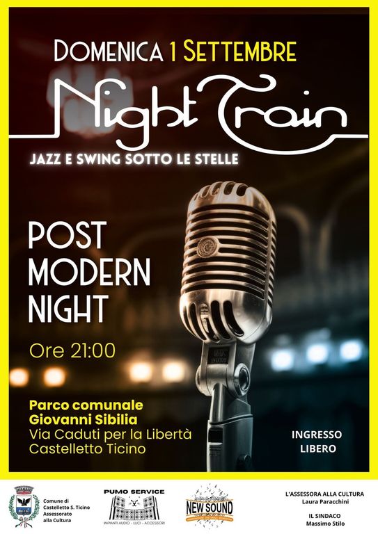 Domenica 1 settembre, il parco comunale "G. Sibilia" di Castelletto Sopra Ticino diventerà il palcoscenico di una serata magica all'insegna della musica e dell'eleganza. Alle ore 21:00, il quintetto "Night Train", una band di giovani e talentuosi musicisti italiani, si esibirà in una speciale "Post Modern Night", reinterpretando in chiave vintage i successi della musica pop contemporanea.