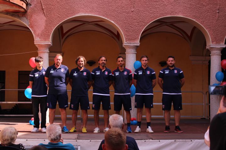Presentazione ufficiale per il nuovo Gozzano, che domani esordirà in Coppa Italia contro l'Oltrepovoghera. "Dopo un mese di lavoro - ha esordito il presidente Fabrizio Leonardi - le sensazioni sono positive, anche se i primi, veri responsi arriveranno dal campo negli impegni ufficiali. Questa stagione, che ricordo è quella dei 100 anni del nostro sodalizio, ci auguriamo possa essere piena di soddisfazioni per i nostri tifosi, ai quali abbiamo voluto lanciare un segnale, mantenendo inalterato il prezzo degli abbonamenti di gradinata, abbassnado quello di tribuna centrale e regalando le amichevoli. Sappiamo quanto siano importanti per noi e vogliamo sempre più avere un rapporto con i Fedelissimi e gli Ultras - ha concluso Leonardi. A fare gli onori di casa il sindaco di Gozzano Carla Biscuola, che ha sottolineato la valenza per il comune cusiano del club rossoblu.