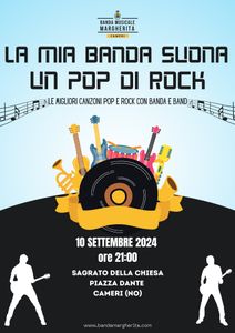 Martedì 10 settembre alle ore 21:00, la Banda Musicale Margherita animerà il sagrato della Chiesa Parrocchiale in Piazza Dante Alighieri con un evento musicale unico: "La Mia Banda Suona un Pop di Rock". La serata promette un viaggio sonoro attraverso le migliori canzoni pop e rock, presentate in una veste nuova e sorprendente.