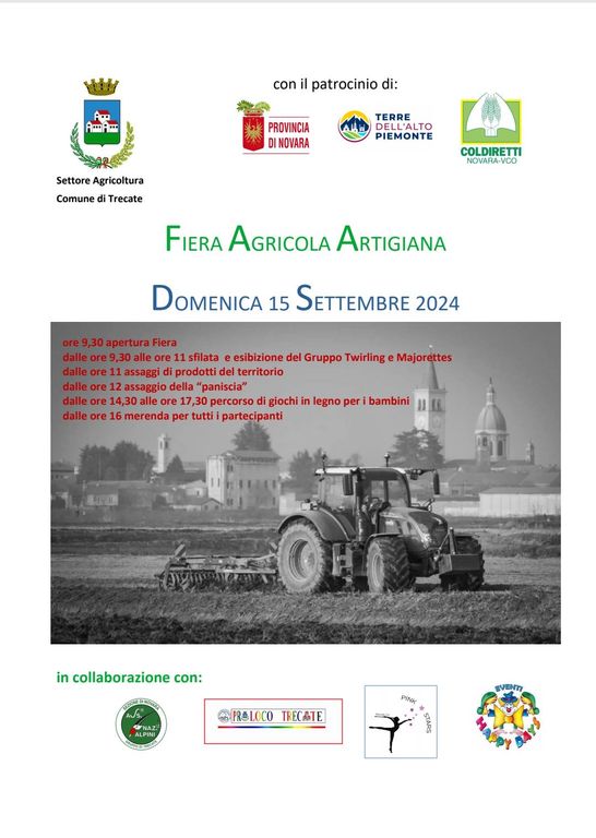 Domani, domenica 15 settembre, via Verdi ospiterà la Fiera Agricola e Artigiana, evento tradizionale che celebra il meglio dei prodotti locali e a "chilometro zero". Organizzata dalla Città di Trecate e patrocinata dalla Provincia di Novara, dall’Agenzia turistica locale “Terre dell’Alto Piemonte” e da Coldiretti, la fiera sarà inaugurata ufficialmente alle 9.30 con le majorettes del gruppo “Pink Stars” e la musica dell’associazione “Line-Out”.