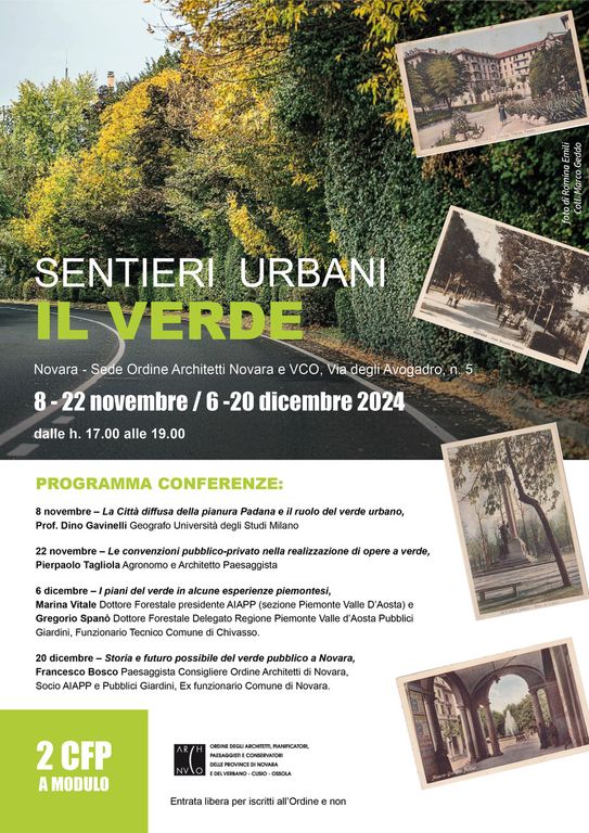 È stata presentata, nella sede dell’ordine degli architetti delle province di Novara e Vco l’iniziativa “Sentieri urbani – libri e conferenze per conoscere la città”, promossa dalla commissione formazione. Tra ottobre e dicembre sono in programma quattro presentazioni di libri e quattro incontri di approfondimento sui temi della città e del verde.