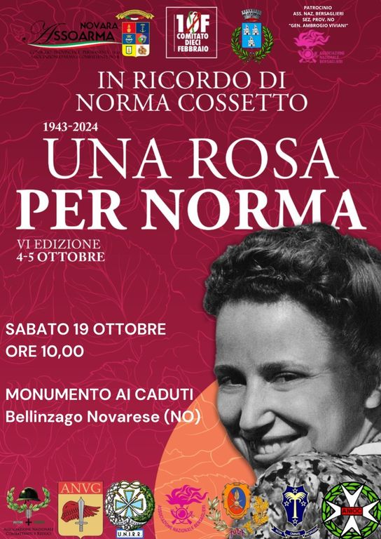 Sabato 19 ottobre 2024, alle ore 10.00, si svolgerà una significativa cerimonia di commemorazione delle Vittime delle Foibe presso il Monumento ai Caduti. L'evento è parte dell'iniziativa "Una Rosa per Norma Cossetto", promossa dall'Associazione Nazionale Bersaglieri e dal Comitato 10 Febbraio.