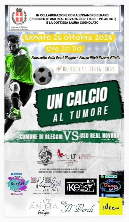 Oleggio si prepara a vivere una serata all’insegna della solidarietà e dello sport con l’evento benefico “Un Calcio al Tumore”, organizzato dal Comune di Oleggio in collaborazione con l’Assessorato allo Sport, Alessandro Berardi, presidente dell’USD Real Novara, e la Dott.ssa Laura Cognolato. La manifestazione si terrà sabato 26 ottobre 2024 alle ore 20.30 presso il Palazzetto dello Sport in Piazza Atleti Azzurri d’Italia, con l’obiettivo di raccogliere fondi per i reparti di oncologia e oncologia pediatrica dell’Ospedale Maggiore della Carità di Novara.