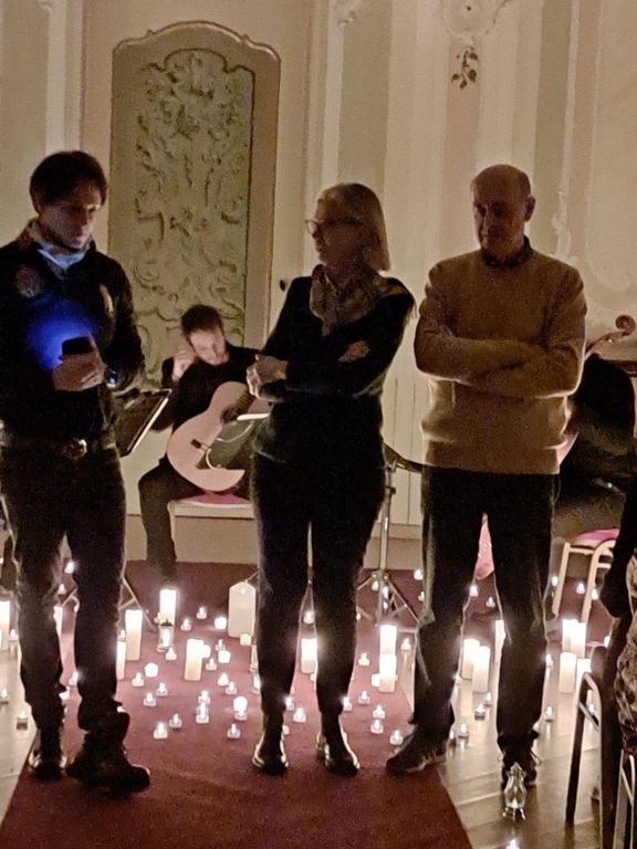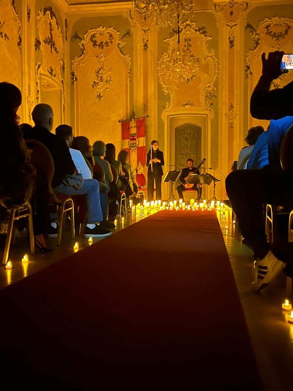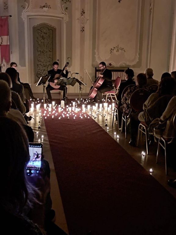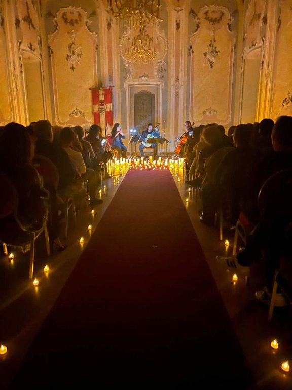 A rendere speciale la serata è stata l’esibizione del "Trio Orpheus", composto da Benedetta Ballardini al flauto, Matteo Vercelloni al violoncello e Marco Calzaducca alla chitarra. Il trio ha interpretato brani di musica da salotto, creando un’atmosfera intima e raffinata che ha affascinato il pubblico, visibilmente coinvolto e rapito dalla magia della musica e delle candele.