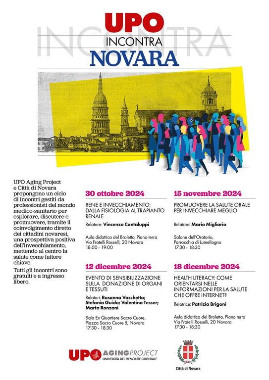Il Progetto Aging dell'Università del Piemonte Orientale, in collaborazione con il Comune di Novara, prosegue con entusiasmo il suo ciclo di incontri dedicati a promuovere una visione positiva dell'invecchiamento. Questi eventi mirano a sensibilizzare la comunità sull'importanza della prevenzione e della gestione delle patologie associate all'età avanzata.