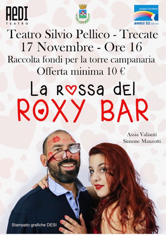 La Città di Trecate e il Gruppo trecatese “Amici 52” insieme per promuovere lo spettacolo teatrale “La rossa del Roxy Bar” finalizzato alla raccolta fondi a favore del restauro della torre campanaria della storica chiesa di San Francesco.