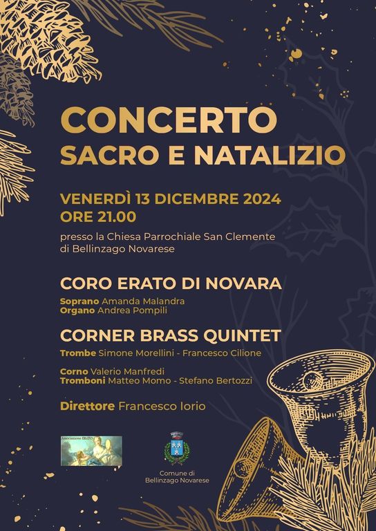 In occasione delle festività natalizie, l'Amministrazione Comunale di Novara propone un evento imperdibile per tutti gli amanti della musica. Venerdì 13 dicembre, alle ore 21.00, la Chiesa Parrocchiale ospiterà un affascinante concerto di musica sacra e natalizia, eseguito dal Coro Erato di Novara e dal Cornet Brass Quintet.