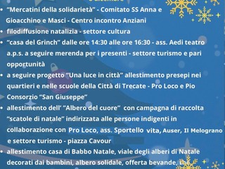 Tutto è pronto per l’accensione dell’atmosfera natalizia a Trecate domenica 8 dicembre, con numerosi appuntamenti organizzati dalla Città in collaborazione con la Pro Loco e le associazioni locali.
