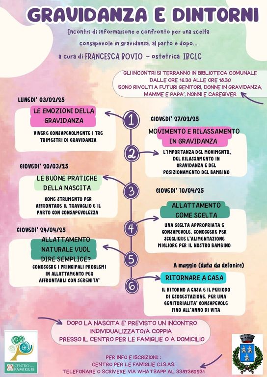 Per maggiori informazioni o per iscriversi, è possibile contattare il Centro per le Famiglie CISAS, chiamando o inviando un messaggio WhatsApp al numero 338/7360931.