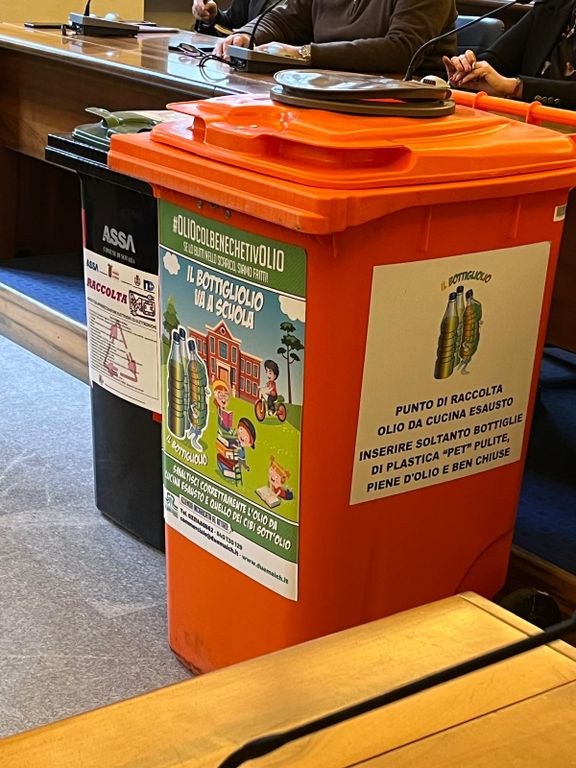 Per conferire l’olio, le studentesse e gli studenti utilizzando una qualsiasi bottiglia di plastica trasparente “PET” (quelle per l’acqua minerale, per intenderci) raccoglieranno l’olio da cucina esausto prodotto dalla propria famiglia. Quando la bottiglia sarà piena la si potrà portare presso il bottigliolio, ossia il contenitore deputato a raccogliere l’olio, presente dal 2023 in tutte le scuole novaresi, senza effettuare alcun svuotamento, quindi senza rischio di sporcarsi e di sporcare, introducendo, semplicemente, la bottiglia ben chiusa nel contenitore.