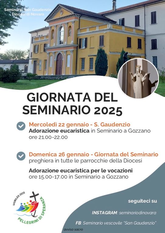 Come ogni anno, la prima domenica dopo la festa di San Gaudenzio è dedicata nella diocesi di Novara alla Giornata del Seminario, un appuntamento che coinvolge tutte le comunità parrocchiali nell’importante missione di pregare per le vocazioni e sostenere concretamente il Seminario. Domenica 26 gennaio 2025, la basilica di Gozzano sarà il centro di questo momento spirituale, con un pomeriggio di preghiera e adorazione eucaristica dalle 15 alle 17, culminando nella celebrazione dei vespri alle 16.30.