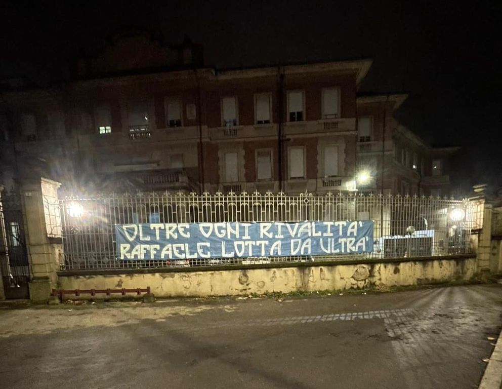 É ancora in coma farmacologico nel reparto di rianimazione dell'Ospedale Maggiore di Novara Raffaele Carlomagno, il tifoso 42enne della Pro Patria che sabato pomeriggio é precipitato dalla curva dello Stadio Piola di Novara battendo violentemente il capo nel fossato.