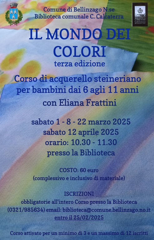 La Biblioteca comunale C. Calcaterra, in collaborazione con Eliana Frattini, ripropone, dopo il successo delle precedenti edizioni, il Corso di acquerello steineriano per bambini dai 6 agli 11 anni. Il corso, che si terrà dal 1° marzo al 12 aprile 2025, prevede 4 incontri settimanali, ogni sabato mattina dalle 10.30 alle 11.30.