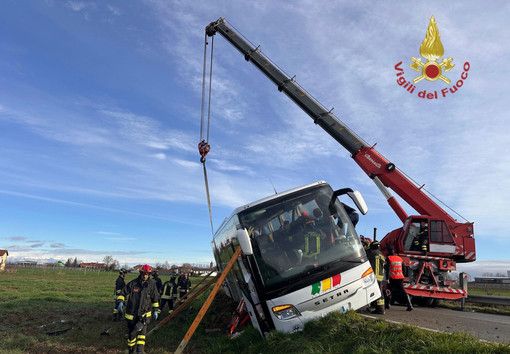 Paura a Villafalletto nel Cuneese per un pullman con a bordo oltre una trentina di ragazzi, partiti da Pinerolo per raggiungere Prato Nevoso, rimanendo in bilico sulla scarpata a lato strada. È successo questa mattina, mercoledì 12 marzo, all'altezza della frazione Termine, nei pressi del bar ‘Herbie’