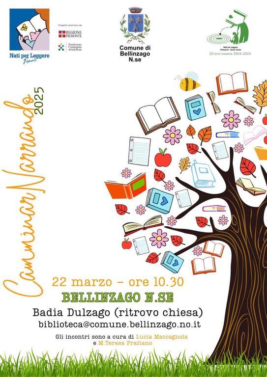L’incontro è aperto anche ai fratellini e sorelline più grandi o più piccoli! In caso di maltempo, l’evento si svolgerà nella Sala della Biblioteca C. Calcaterra di Bellinzago Novarese, e gli iscritti verranno avvisati via email entro venerdì 21 marzo. Le iscrizioni sono aperte presso la Biblioteca di Bellinzago Novarese (biblioteca@comune.bellinzago.no.it, 0321/985634).