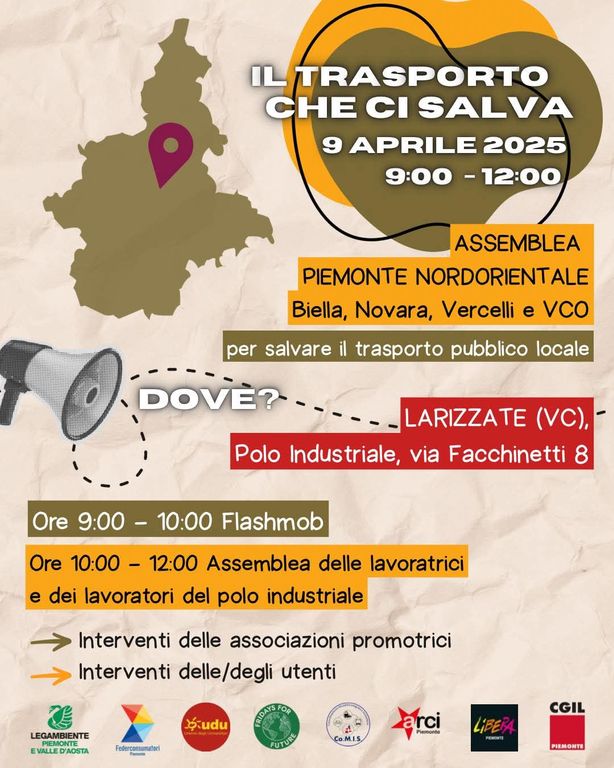 Il trasporto pubblico locale in Piemonte sta vivendo una crisi profonda, con gravi disservizi che colpiscono lavoratori, studenti, giovani, pensionati e tutte le persone che quotidianamente dipendono da treni e autobus per spostarsi. La Cgil Piemonte, insieme a Legambiente, Federconsumatori Piemonte, Udu, Fridays For Future, Co.m.i.s. Piemonte, Arci Piemonte e Libera Piemonte, ha dato vita a una campagna di sensibilizzazione e difesa del trasporto pubblico dal titolo "Il trasporto che ci salva". L’obiettivo è affrontare questa emergenza e chiedere soluzioni concrete per migliorare il sistema di mobilità regionale.