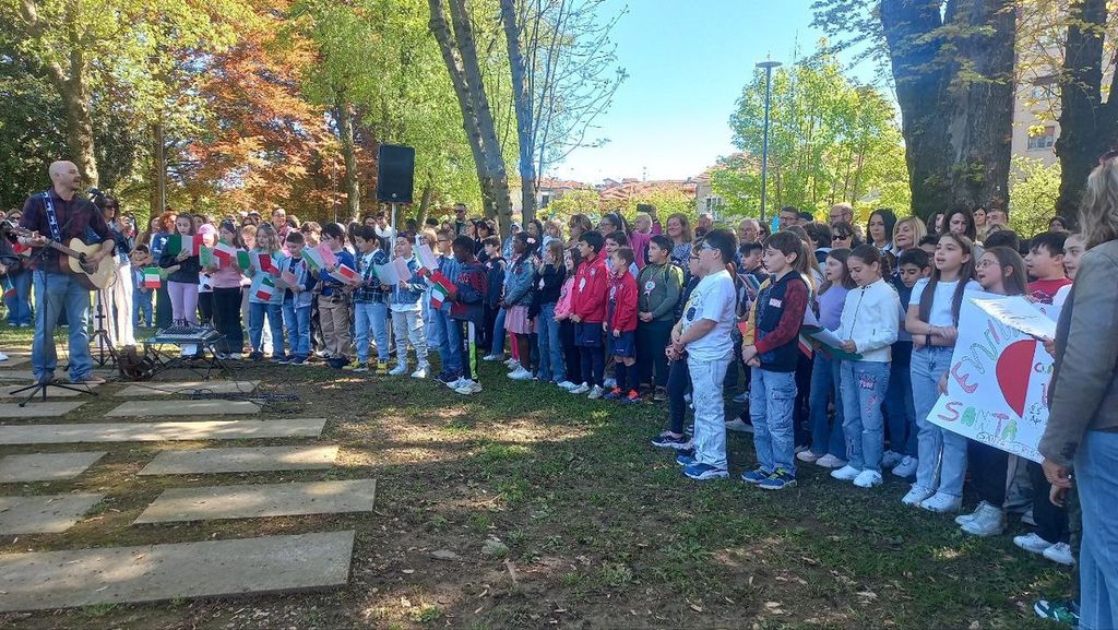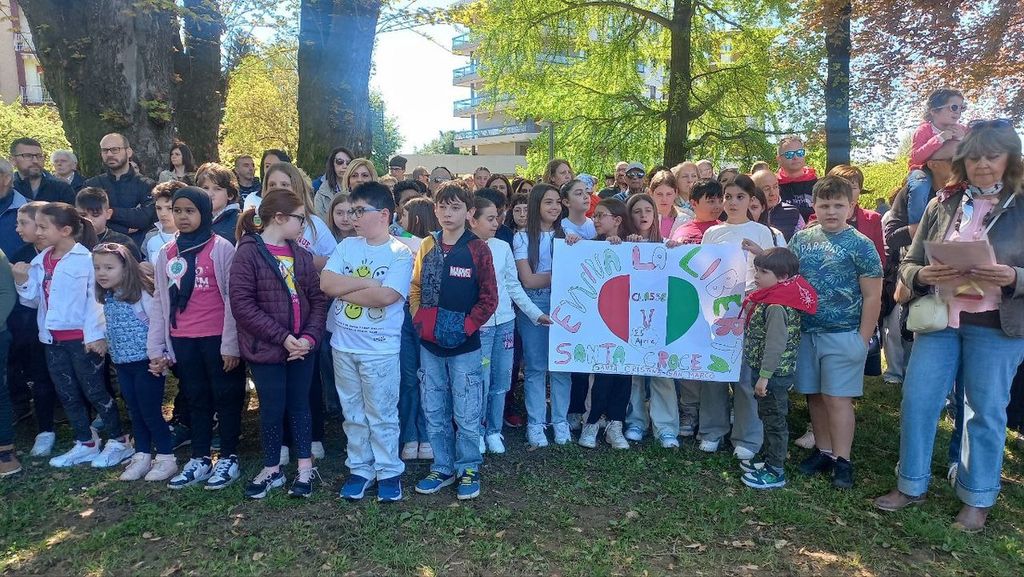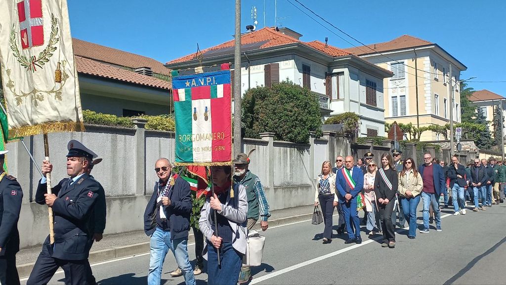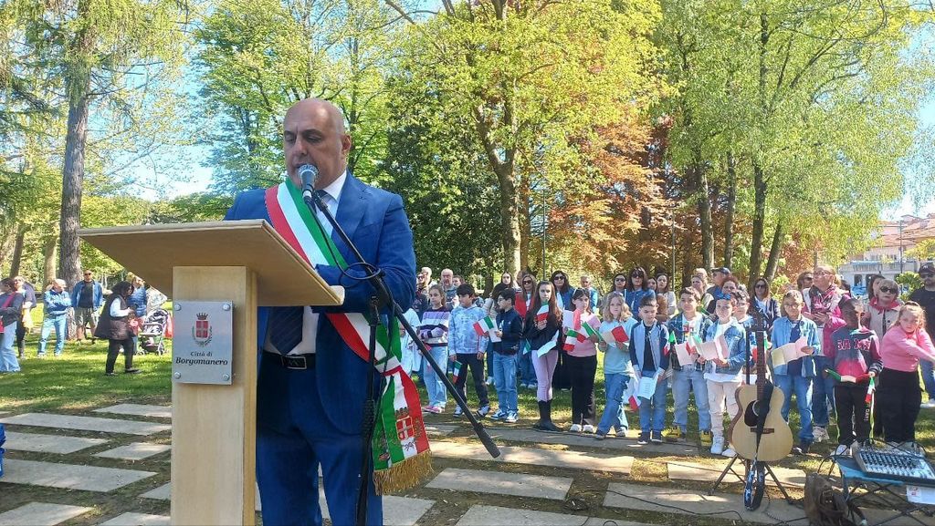 Tutto secondo tradizione a Borgomanero per la celebrazione del 25 aprile, 80esimo anniversario della Liberazione. La giornata si è aperta con la messa in memoria dei Caduti celebrata nella chiesa dei Salesiani. Da qui ha preso le mosse il corteo verso il monumento ai Caduti del parco della Resistenza. Dopo la deposizione della corona d’alloro, gli studenti delle scuole elementari, insieme alla banda “La Cavagliese” hanno intonato l’inno nazionale.
