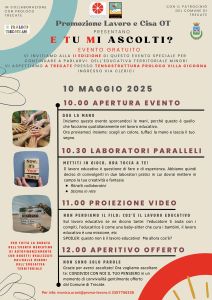 Durante la mattinata sarà inoltre allestito un mercatino di autofinanziamento con oggetti creati dai ragazzi stessi nell’ambito dei percorsi educativi. A chiudere l’evento sarà un momento conviviale offerto dall’Amministrazione comunale, per favorire l’incontro e il dialogo tra cittadini, operatori e istituzioni.