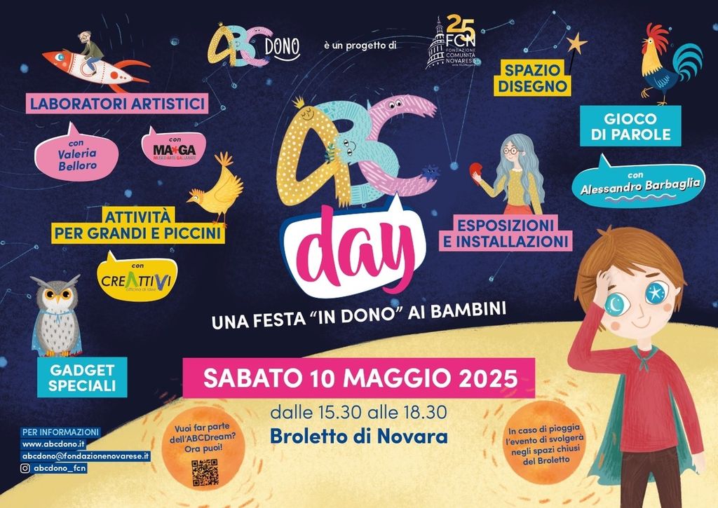 Sabato 10 maggio, dalle 15.30 alle 18.30, il Broletto di Novara ospiterà una grande festa per celebrare il terzo anno di ABCDono, il progetto promosso dalla Fondazione Comunità Novarese che porta nelle scuole primarie la Cultura del Dono. L'evento sarà un’occasione speciale per condividere esperienze creative e divertenti, pensate per grandi e piccini.