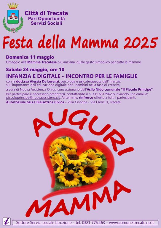 In occasione della Festa della mamma, l’Amministrazione comunale di Trecate propone anche quest’anno un programma di iniziative pensato per valorizzare il ruolo delle madri nella comunità.